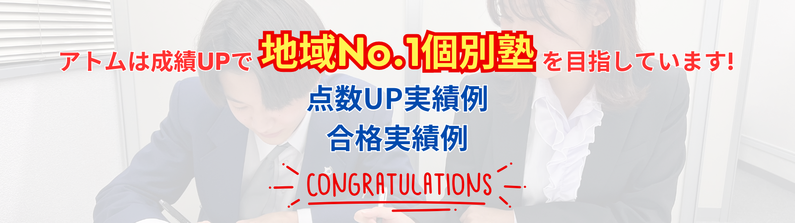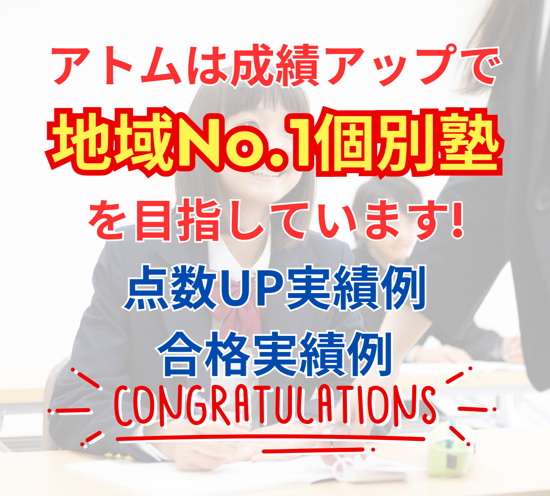 アトムは成績アップで地域No.1個別塾を目指しています!