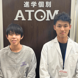 数学が大の苦手でしたが、アトムの先生方は分かるまで詳しく教えてくれるため、とても分かりやすかったです。苦手だった連立方程式なども時間はかかりましたが克服することができました。また、受験に向けて中3の11月後半から、作文と面接の練習を始め、12月からは試験前日までほぼ毎日塾に通い、勉強だけでなく作文と面接練習を繰り返し行いました。僕はそのお陰で、合格を勝ち取れたのだと思っています。僕がアトムで学んだことそれは、「諦めないこと」です。たとえ、現段階では分からなくても毎日少しずつ問題に向き合い努力すればいつか必ず分かるように解けるようになります。受験生の皆さん!心から応援しています!ありがとうございました。
