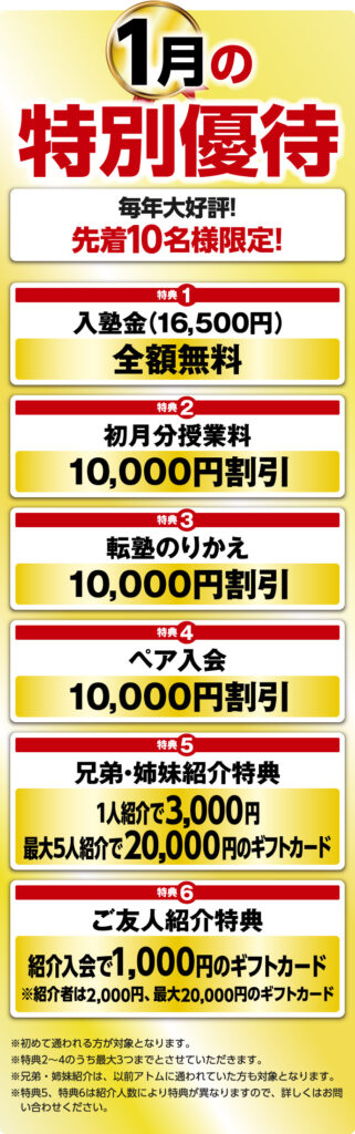 \ 体験授業ご参加の方にキャンペーン優先適用 /