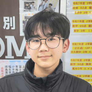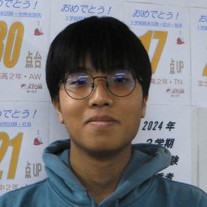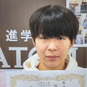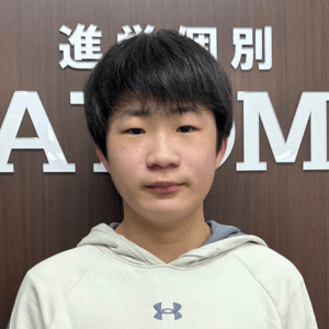 私はATOMに入る前は数学が苦手で定期考査でもよい結果を出すことができませんでした。しかし、ATOMで数学を毎週復習をしテスト前にはテスト範囲を重点的に学習したことで定期考査で80点や90点を取れるようになりました。また、長期休みに講習に参加することで常に勉強する習慣をつけることができました。